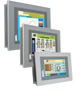 Obslužné terminály s grafickým displejom ovládané dotykom. VT155W, VT185W, VT505W, VT515W, VT525W, VT555W, VT560W, VT565W, VT575W, VT580W, VT585W(B), VT595W.